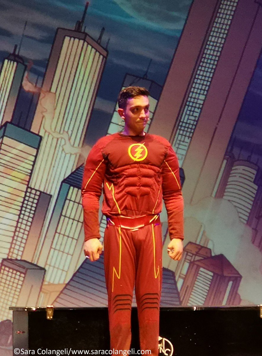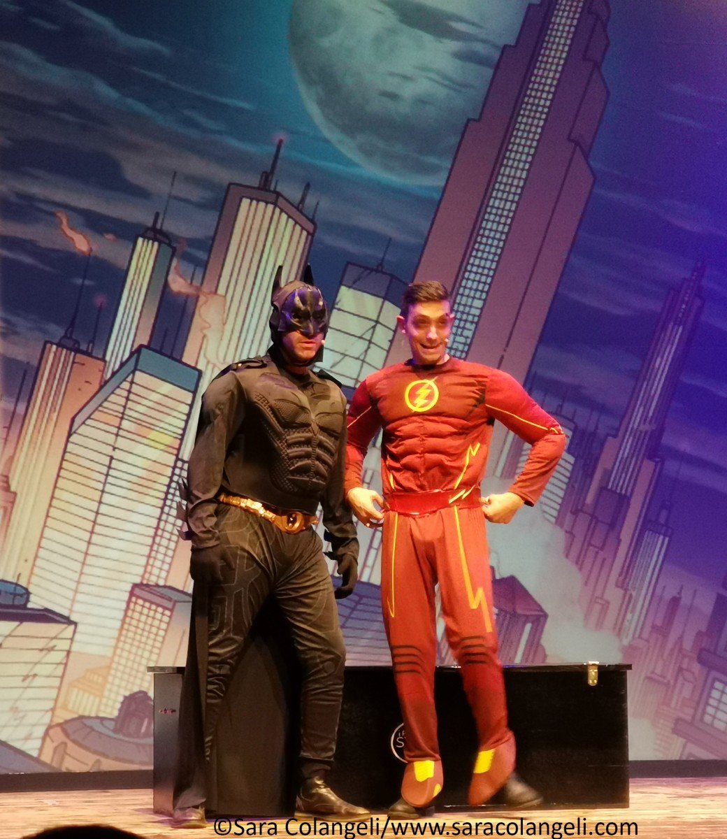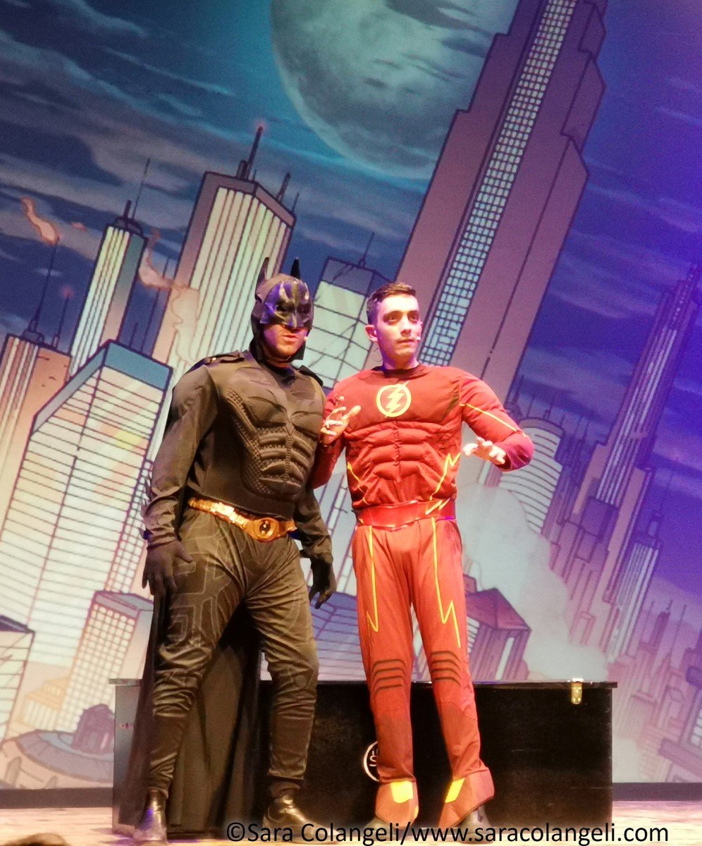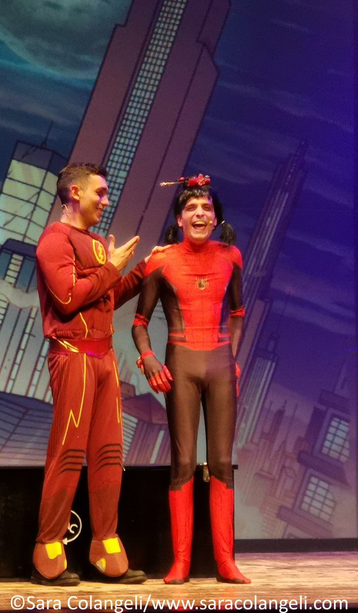 Il messaggio era chiaro anche nelle passate edizioni, ma in questo PopArt Revoution, è ancora più evidenziato ad ogni finale di scena. Ridendo tra una battuta e l’altra, ci si trova a parlare di emigrazione ed immigrazione, degli anziani lasciati soli (mentre per i cani si riserva un trattamento diverso), la morte fa ridere, fino ad arrivare a quello più significativo di tutti: la donna è un bene prezioso e non va toccato, inscenato con il monologo di Shakespeare interpretato da Federico Campaiola. Si passa da spazi interstellari con Star Wars e il capitano KirkEEEEEEE ai supereroi DC/Marvel. Se Alessio è un Batman ingessato, Alessandro è un Flash gonfiato… Federico fonde il costume di Spiderman con Lady Bugs, generando un supereroe cinese irriverente e comico.