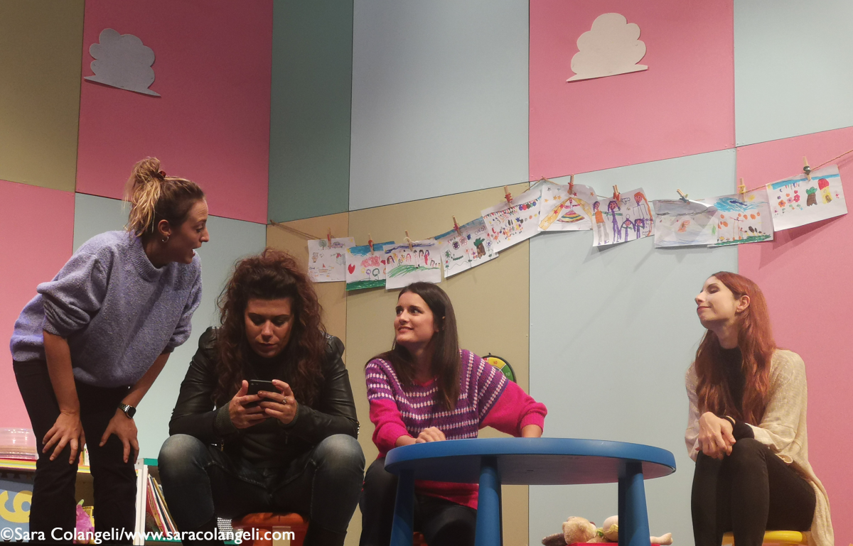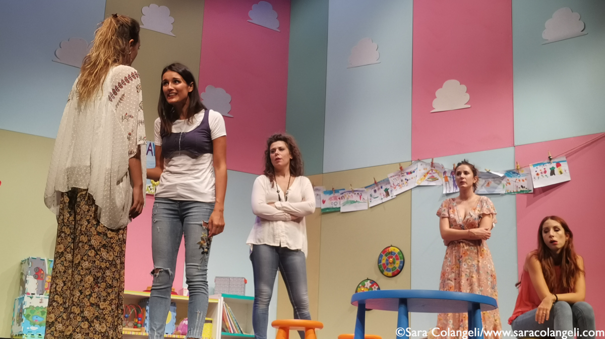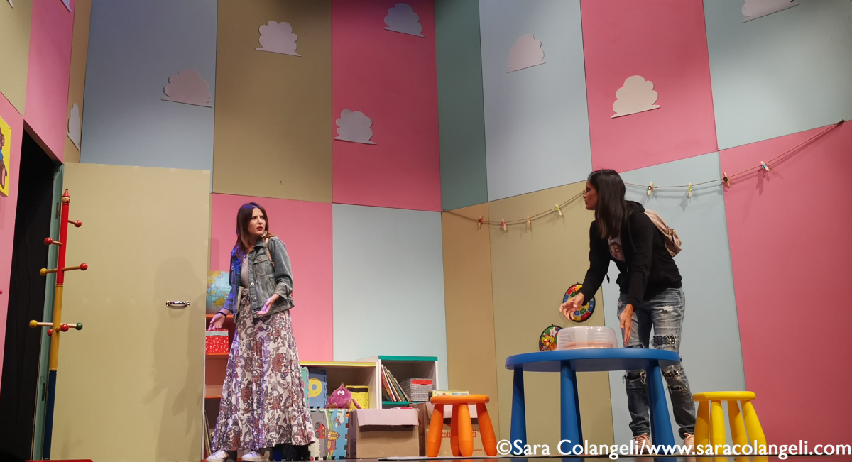 Ovviamente ci sono dei piccoli aggiustamenti, ma sono soprattutto arricchimenti. C’è per esempio una scena in più. Un momento carico di ricordi, dove le ragazze fanno il gioco che tutti sappiamo fare meglio quando siamo in compagnia degli amici: tirare fuori aneddoti e date correlate. In formazione per il momento Chiara David non c’è, impegnata sul fronte L’opera del Fantasma, viene egregiamente sostituita da Giulia Marinelli. Giovane, simpatica e spigliata è una macchina da guerra ed inanella battute a raffica mostrandosi perfettamente a su agio con il gruppo storico di Tabù. Per un palcoscenico importante, ci vuole una scenografia di tutto rispetto. Così anche la ludoteca dove si ritrovano le ragazze inizia a tingersi di colori idonei, con pannelli pastello tenui, che ricordano molto gli asili e baby parking di ultima generazione.